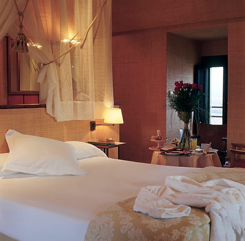 This air-conditioned room features a TV, a mini-bar and a private bathroom with bath. The room has a 17th century décor, with Spanish wooden furniture and damask curtains, as well as velvet armchairs.